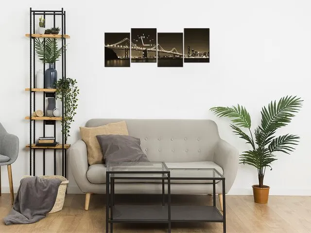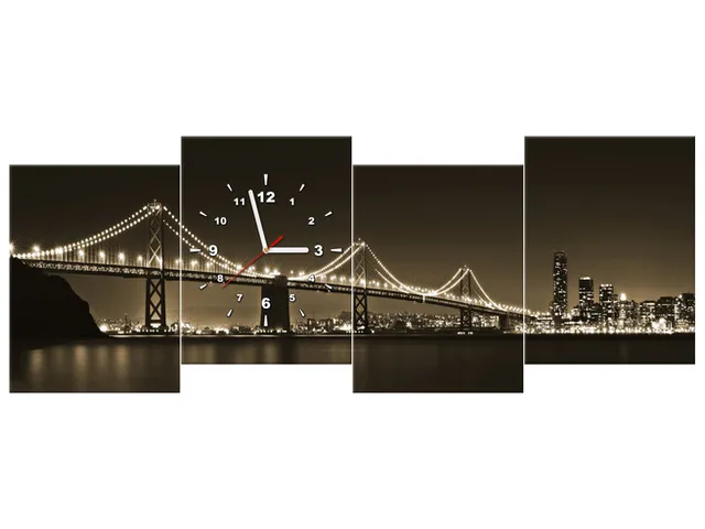Úvod » Obrazy » Obrazy s hodinami » Nástenné hodiny na plátne Most v noci - Tanel Teemusk