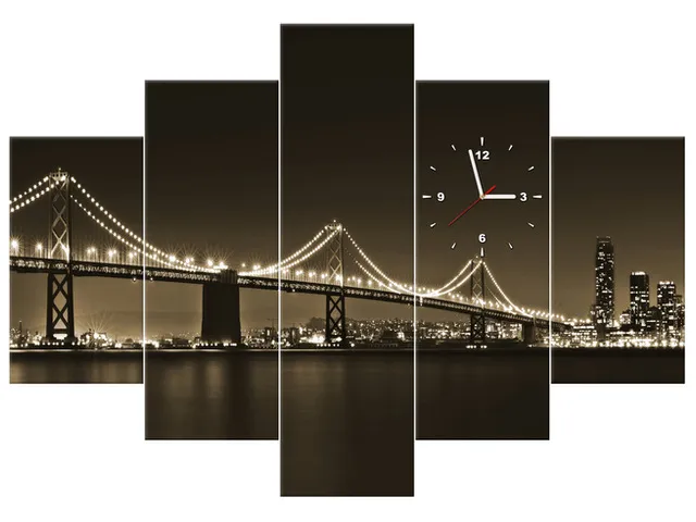 Úvod » Obrazy » Obrazy s hodinami » Nástenné hodiny na plátne Most v noci - Tanel Teemusk