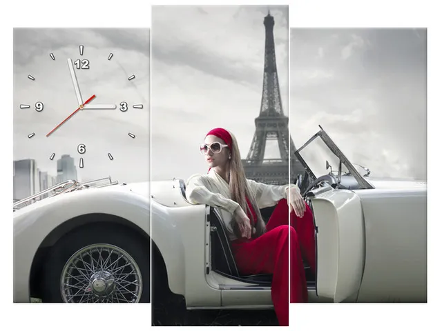 Úvod » Obrazy » Obrazy s hodinami » Nástenný obraz s hodinami Parkovisko pri Eiffelovej veži