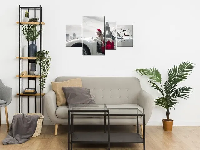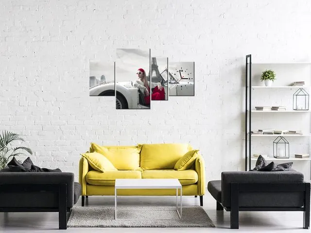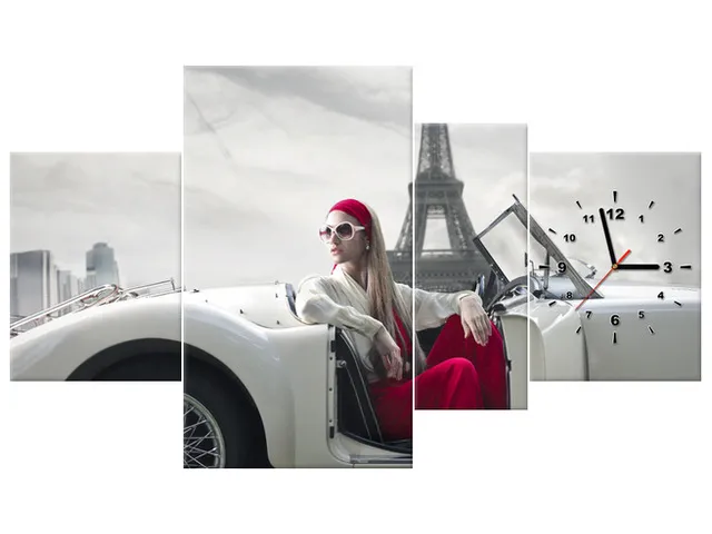 Úvod » Obrazy » Obrazy s hodinami » Nástenný obraz s hodinami Parkovisko pri Eiffelovej veži