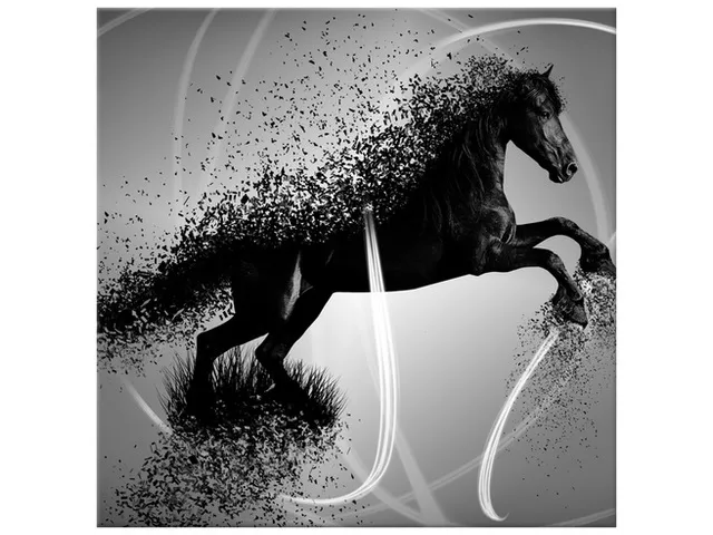 3573A_1L Obraz Fragmentácia Čierno biely kôň - Jakub Banas |