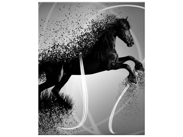 3573A_2E Obraz Fragmentácia Čierno biely kôň - Jakub Banas |