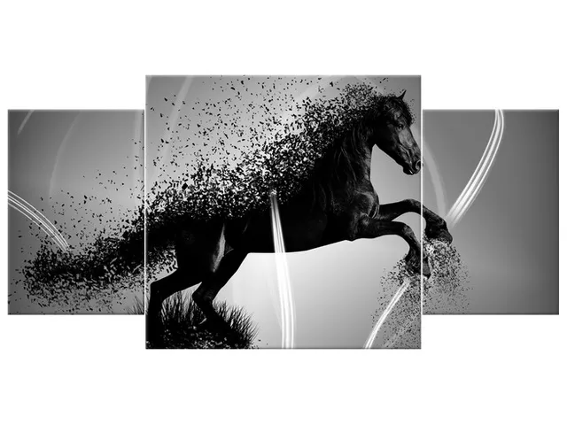 3573A_3K Obraz Fragmentácia Čierno biely kôň - Jakub Banas |