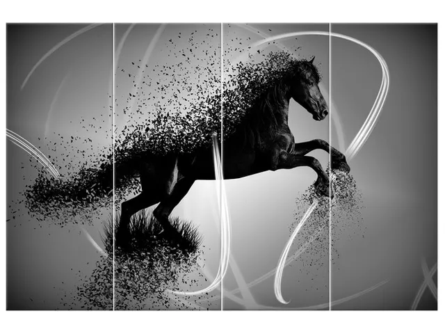 3573A_4M Obraz Fragmentácia Čierno biely kôň - Jakub Banas |