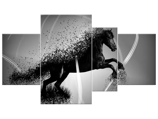 3573A_4O Obraz Fragmentácia Čierno biely kôň - Jakub Banas |