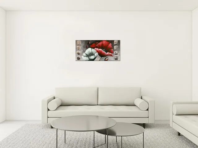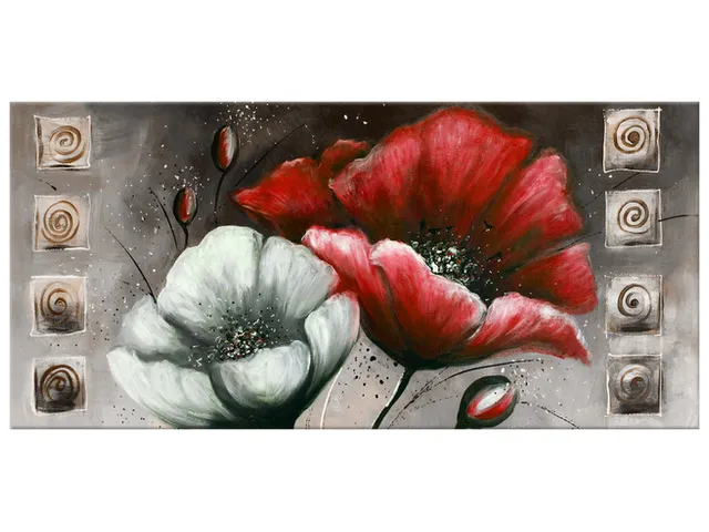 Úvod » Obrazy » Obrazy na plátne » Kvety » Obraz Maľované maky v červenej a bronzovej farbe