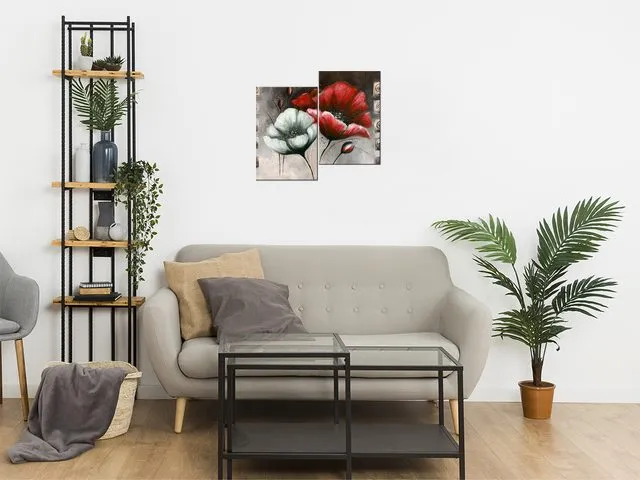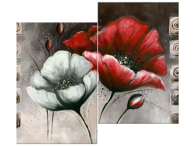4588A_2J Obraz Maľované maky v červenej a bronzovej farbe |