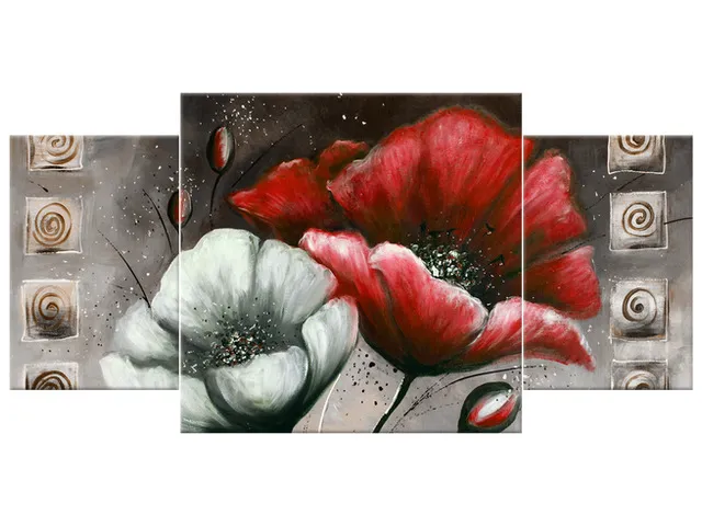 4588A_3J Obraz Maľované maky v červenej a bronzovej farbe |