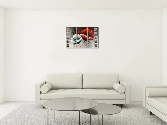 4588A_3K Obraz Maľované maky v červenej a bronzovej farbe |