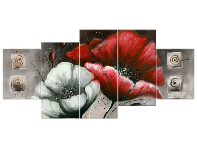 4588A_5N Obraz Maľované maky v červenej a bronzovej farbe |