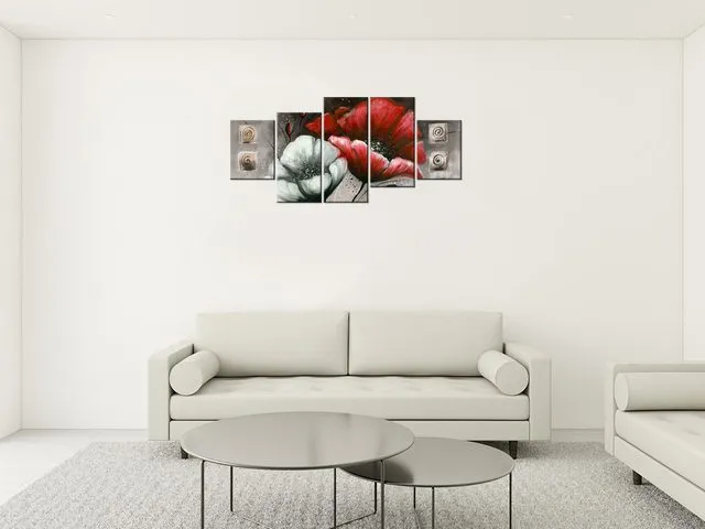 4588A_5J Obraz Maľované maky v červenej a bronzovej farbe |