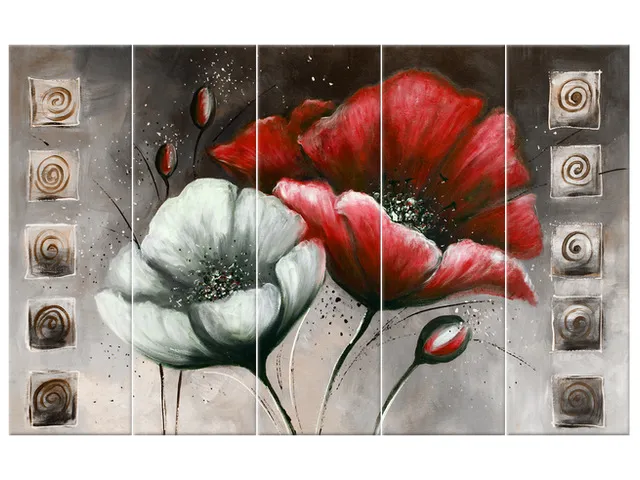 4588A_5J Obraz Maľované maky v červenej a bronzovej farbe |