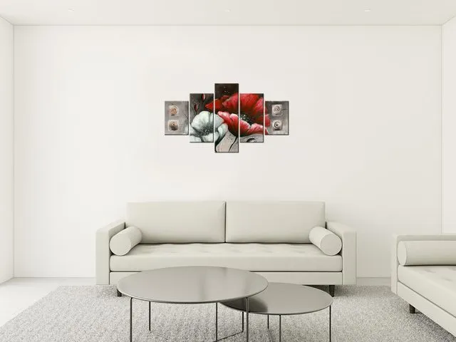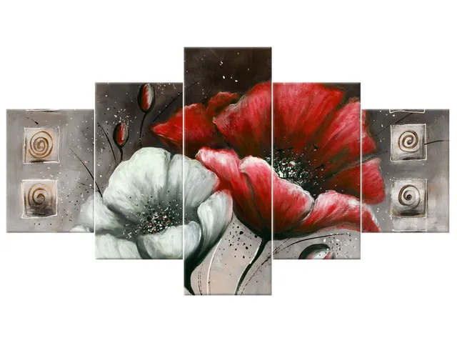 4588A_5J Obraz Maľované maky v červenej a bronzovej farbe |