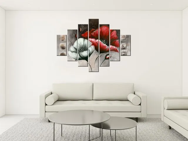 Úvod » Obrazy » Obrazy na plátne » Kvety » Obraz Maľované maky v červenej a bronzovej farbe