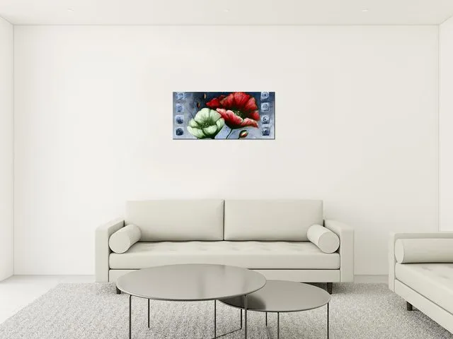 Úvod » Obrazy » Obrazy na plátne » Kvety » Obraz Maľované maky v červenej a zelenej farbe