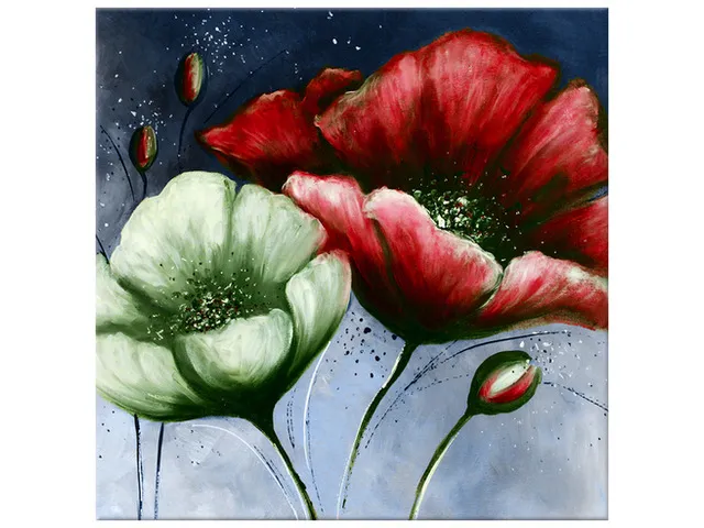 Úvod » Obrazy » Obrazy na plátne » Kvety » Obraz Maľované maky v červenej a zelenej farbe