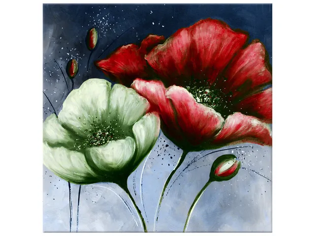 Úvod » Obrazy » Obrazy na plátne » Kvety » Obraz Maľované maky v červenej a zelenej farbe