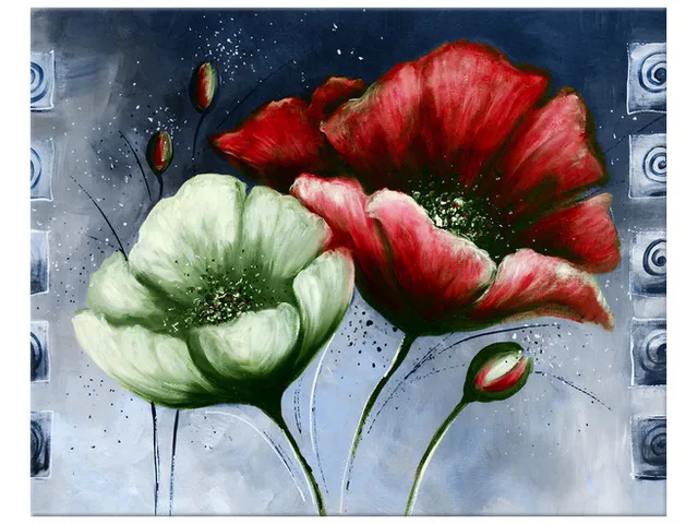 Úvod » Obrazy » Obrazy na plátne » Kvety » Obraz Maľované maky v červenej a zelenej farbe