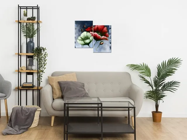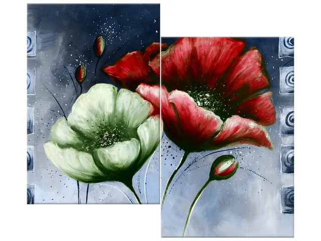 Úvod » Obrazy » Obrazy na plátne » Kvety » Obraz Maľované maky v červenej a zelenej farbe