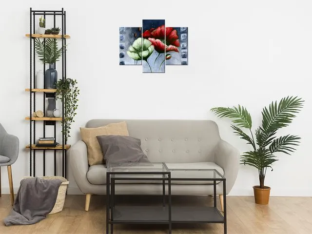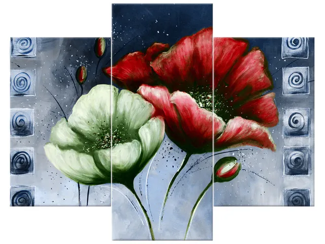 Úvod » Obrazy » Obrazy na plátne » Kvety » Obraz Maľované maky v červenej a zelenej farbe