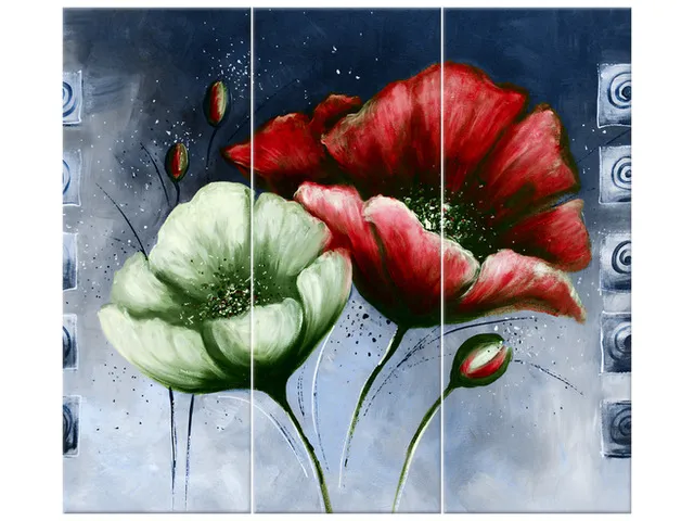 Úvod » Obrazy » Obrazy na plátne » Kvety » Obraz Maľované maky v červenej a zelenej farbe
