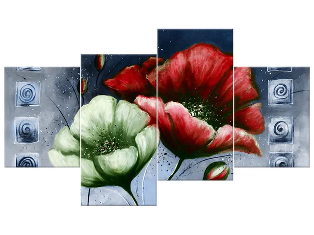 4582A_4G Obraz Maľované maky v červenej a zelenej farbe |