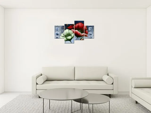 Úvod » Obrazy » Obrazy na plátne » Kvety » Obraz Maľované maky v červenej a zelenej farbe