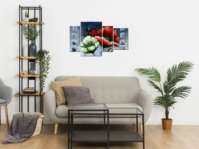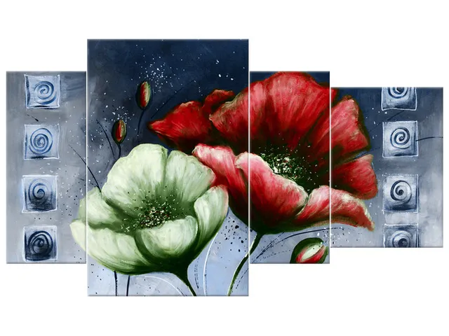 Úvod » Obrazy » Obrazy na plátne » Kvety » Obraz Maľované maky v červenej a zelenej farbe