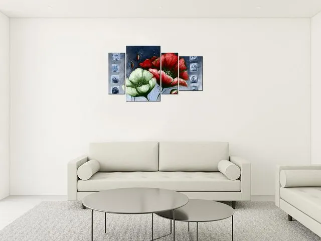 4582A_4H Obraz Maľované maky v červenej a zelenej farbe |