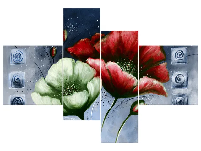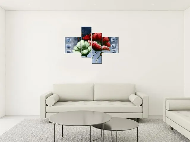 4582A_4Z Obraz Maľované maky v červenej a zelenej farbe |