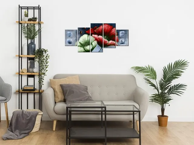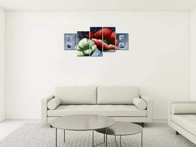 4582A_4Z Obraz Maľované maky v červenej a zelenej farbe |
