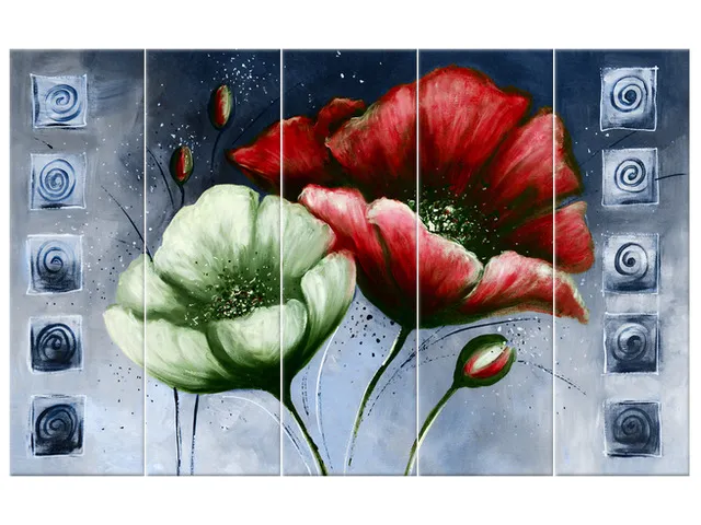 Úvod » Obrazy » Obrazy na plátne » Kvety » Obraz Maľované maky v červenej a zelenej farbe