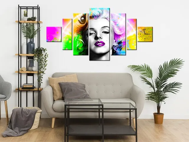 Úvod » Obrazy » Obrazy s hodinami » Obraz Marylin Monroe s hodinami Dúhový obraz