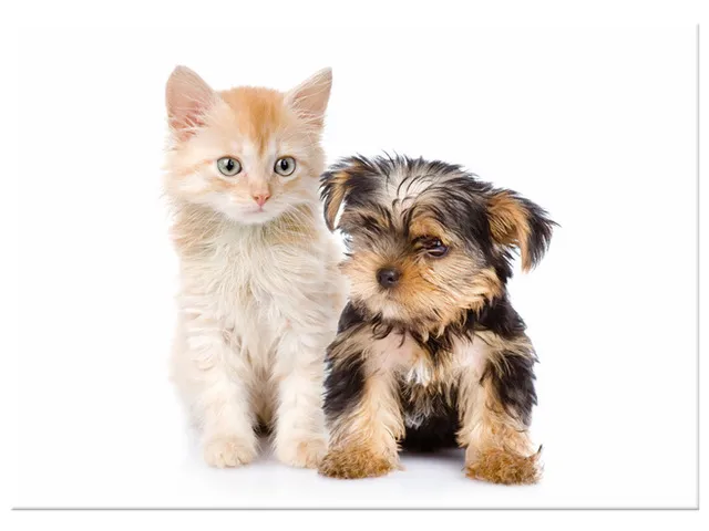 Úvod » Obrazy » Obrazy na plátne » Zvieratá » Obraz Mladý Yorkshire Terrier a mačka