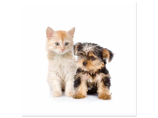 Úvod » Obrazy » Obrazy na plátne » Zvieratá » Obraz Mladý Yorkshire Terrier a mačka