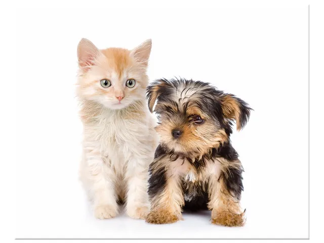 Úvod » Obrazy » Obrazy na plátne » Zvieratá » Obraz Mladý Yorkshire Terrier a mačka