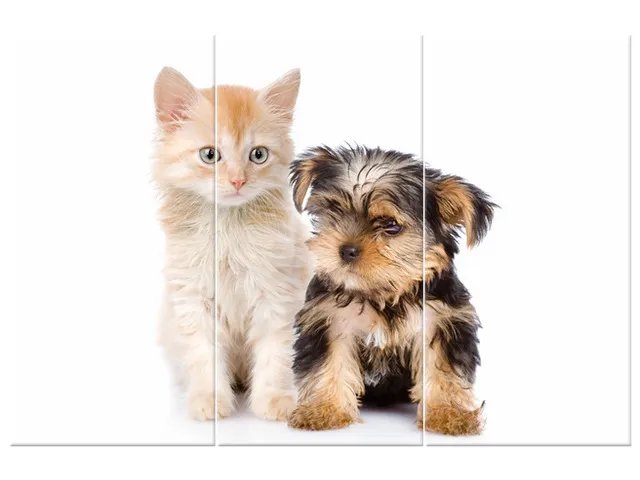 Úvod » Obrazy » Obrazy na plátne » Zvieratá » Obraz Mladý Yorkshire Terrier a mačka