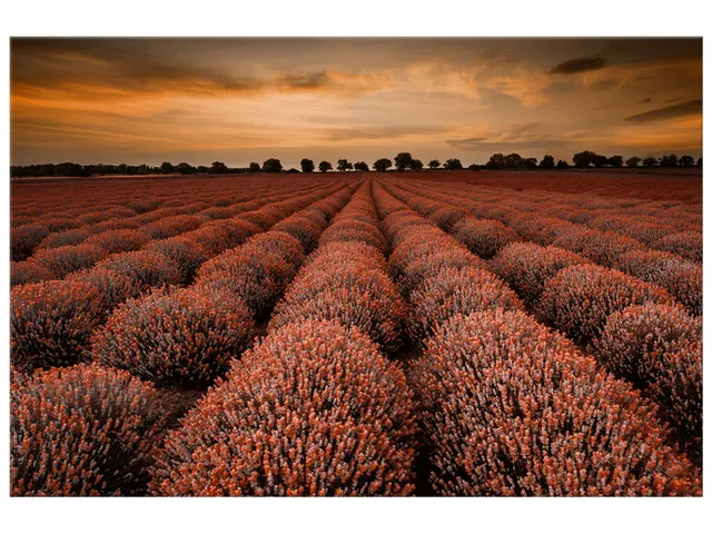 Úvod » Obrazy » Obrazy na plátne » Príroda » Obraz Ohromujúca krajina s levanduľou vo oranžovej farbe