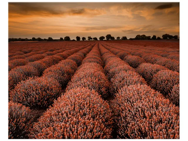 Úvod » Obrazy » Obrazy na plátne » Príroda » Obraz Ohromujúca krajina s levanduľou vo oranžovej farbe