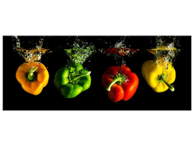 Úvod » Obrazy » Obrazy na plátne » Oheň a voda » Obraz do kuchyne Padajúce papriky