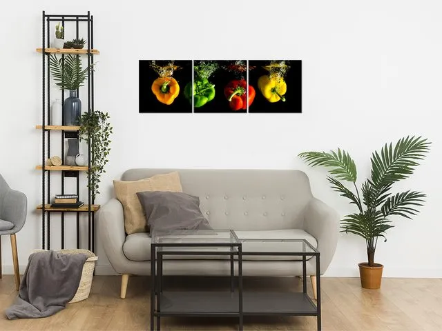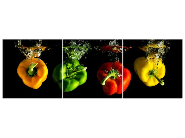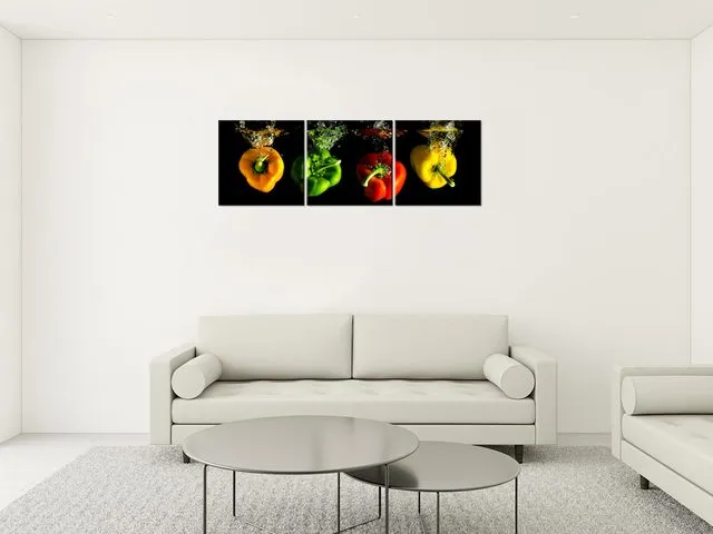Úvod » Obrazy » Obrazy na plátne » Oheň a voda » Obraz do kuchyne Padajúce papriky