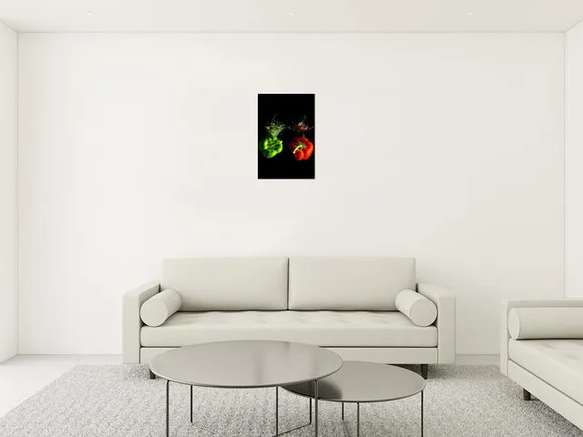 Úvod » Obrazy » Obrazy na plátne » Oheň a voda » Obraz do kuchyne Padajúce papriky