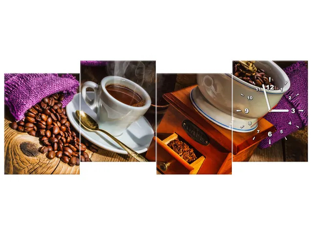Úvod » Obrazy » Obrazy s hodinami » Obraz do kuchyne s hodinami Plné vrecia kávy