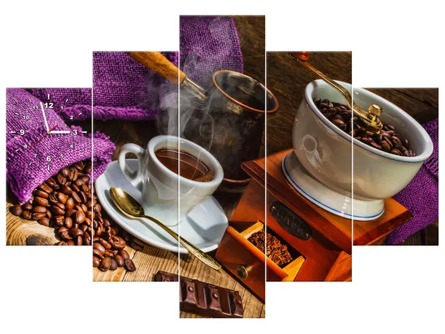 Úvod » Obrazy » Obrazy s hodinami » Obraz do kuchyne s hodinami Plné vrecia kávy