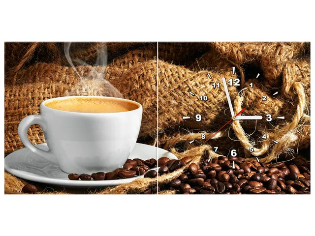 Úvod » Obrazy » Obrazy s hodinami » Obraz do kuchyne s hodinami Šálka kávy