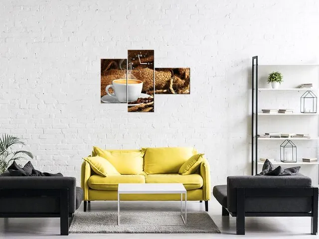 ZP1119A_3AX Obraz do kuchyne s hodinami Šálka kávy |