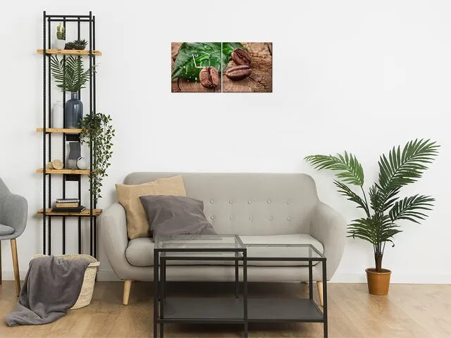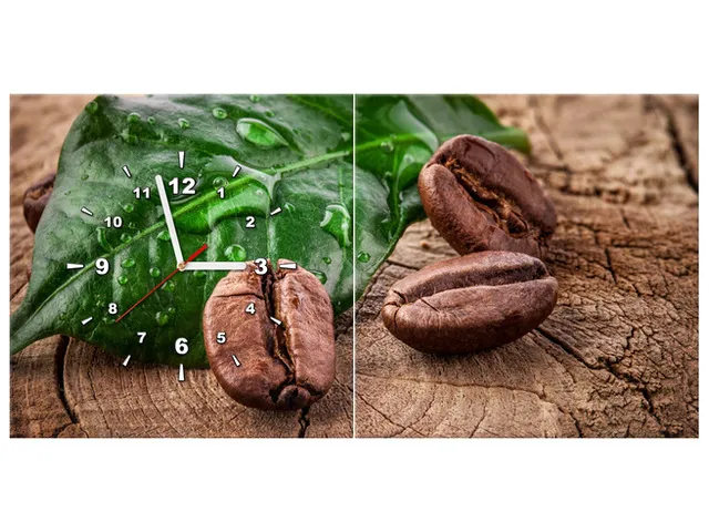Úvod » Obrazy » Obrazy s hodinami » Obraz do kuchyne s hodinami Zrnká kávy na doske