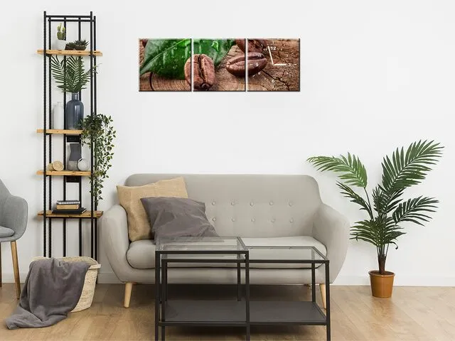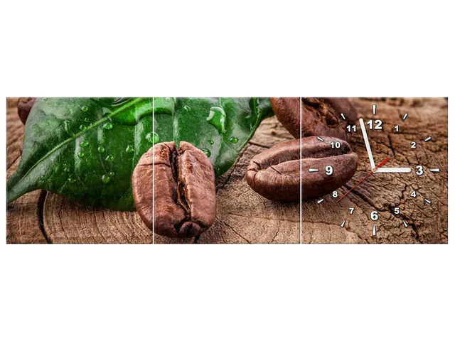 Úvod » Obrazy » Obrazy s hodinami » Obraz do kuchyne s hodinami Zrnká kávy na doske