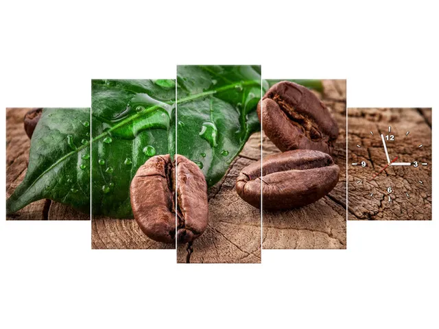 Obraz do kuchyne s hodinami Zrnká kávy na doske