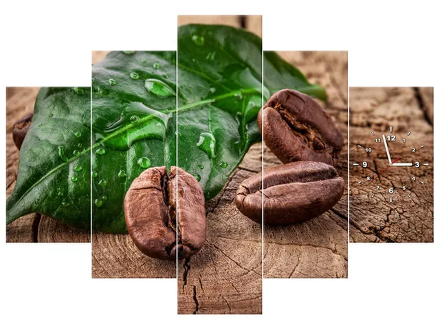 Úvod » Obrazy » Obrazy s hodinami » Obraz do kuchyne s hodinami Zrnká kávy na doske